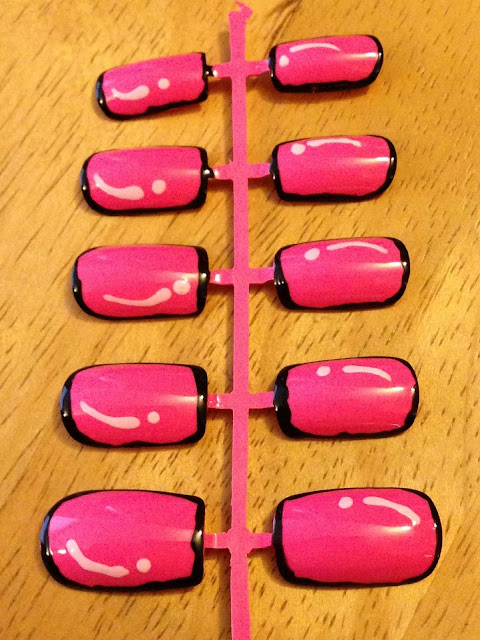 Today I have some comic book nails to show you! Because I have seen this design on so many people I have no idea who to credit the original design to but it isn't me! ;) I did this using bright pink false nails, a black nail art pen and a white nail art pen!